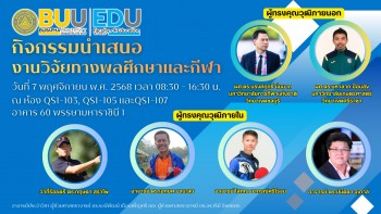 วันที่ 7 พฤศจิกายน 2568 สาขาวิชาพลศึกษา คณะศึกษาศาสตร์ มหาวิทยาลัยบูรพา จัดกิจกรรมนำเสนองานวิจัยทางพลศึกษาและกีฬา ประจำป...